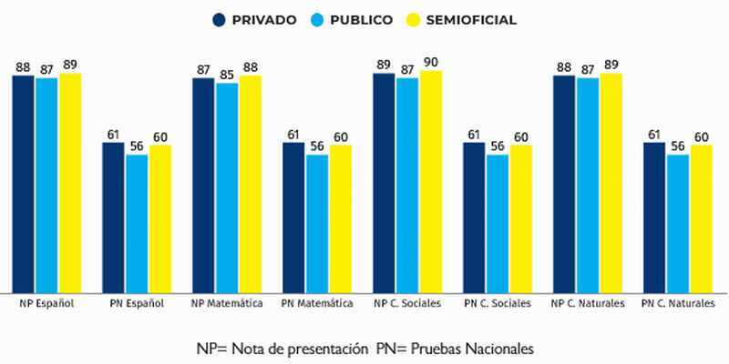 A esto se suma que los estudiantes del sector privado y semioficial obtuvieron mayores calificaciones que los del sector público.