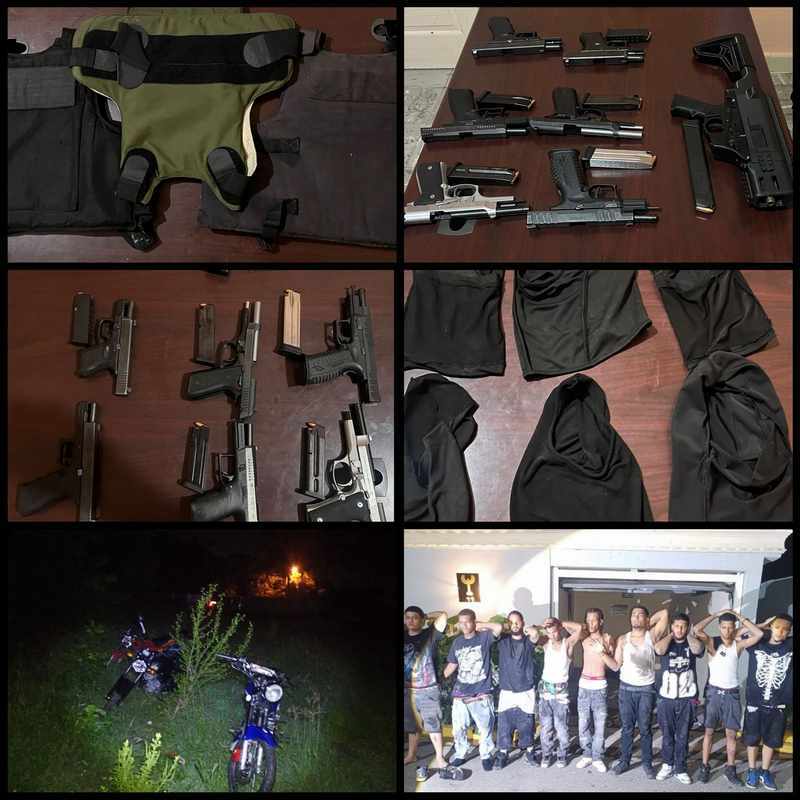 Durante el arresto, se ocuparon 7 armas de fuego, incluyendo pistolas de diferentes marcas y calibres y un arma tipo Uzi, 3 chalecos antibalas, 6 pasamontañas, 10 celulares y 4 motocicletas en una finca cercana, utilizadas presuntamente por la banda.